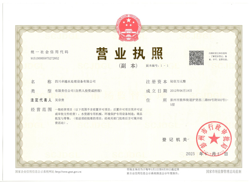 四川卓越水處理設(shè)備有限公司營(yíng)業(yè)執(zhí)照